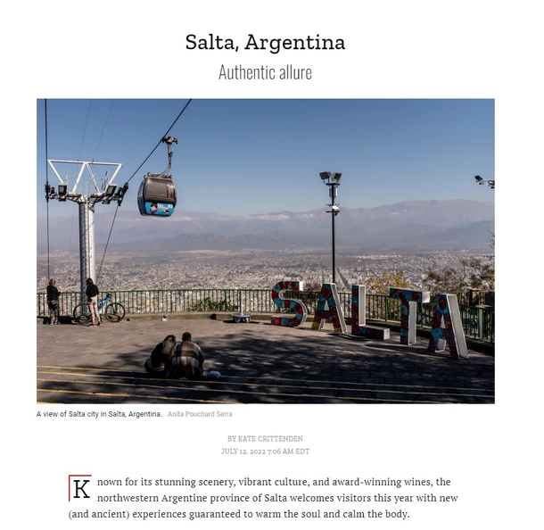 La publicación describe que la provincia norteña es "conocida por su impresionante paisaje, cultura vibrante y vinos galardonados, da la bienvenida a los visitantes este año con experiencias nuevas y antiguas que garantizan calentar el alma y calmar el cuerpo".