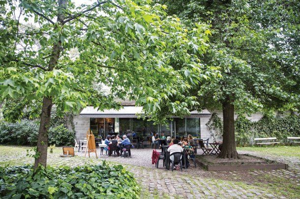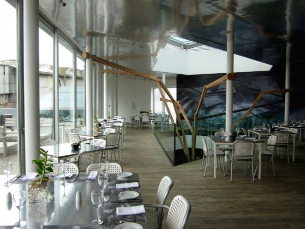 En el piso más alto del edificio, que resalta por su fachada de vidrio transparente, funciona el café y restó. Se destaca la terraza con vistas al Riachuelo, la buena comida casera y el shop en donde se venden productos dulces, aceites, tés y hasta libros. Durante el almuerzo está disponible el menú del día con opciones de carnes o verduras y los postres horneados ahí mismo por sus pasteleros.