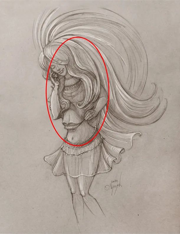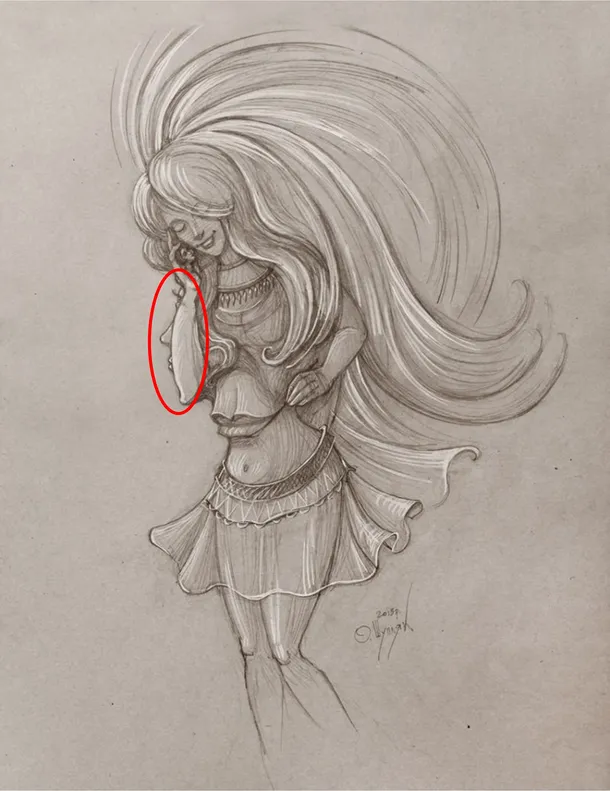 La segunda mujer es la más fácil de detectar: está compuesta por la mano y el antebrazo de la chica principal.